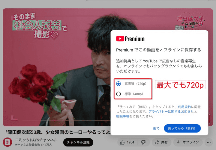 ご覧の通り、たとえ本来の画質が720pを超えていても、実際ダウンロードする時に選べる画質は最大でも720pに止まっています。しかも、無料でダウンロードと書いてあるにも関わらず、本当は会員になって会費を支払わないことにはダウンロードすることもできません。まさにある種の詐欺と言っても過言ではありません。他にもデメリットがいっぱいで、ここでは一番突っ込まれやすい点をもう三つ列挙します。