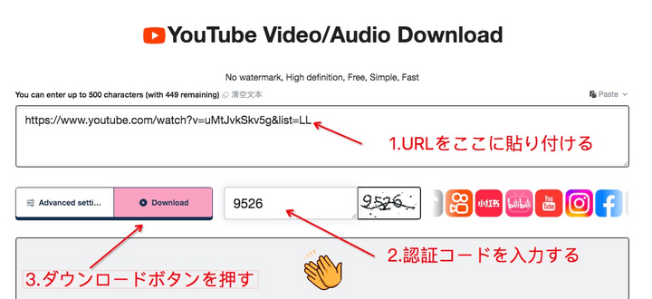 iFuniaを薦めたい理由は他にも、まず操作は「Loader.to」と同じく単純でわかりやすい、これはツールとして極めて重要な属性だと常にそう思っています。その上「Loader.to」の不足の部分(処理速度や安全性、一括ダウンロードと長期性など)を全てクリアできました。まさに完璧と言っても過言ではありません。しかも、最大3回(一度に複数の動画を処理できる)のダウンロード無料回数があり、他のツールよりも6倍速い、使ってみても損はないから、一度ロケットにでも乗った気分をとくと味ってみてはいかかでしょうか。手順は以下の通り: