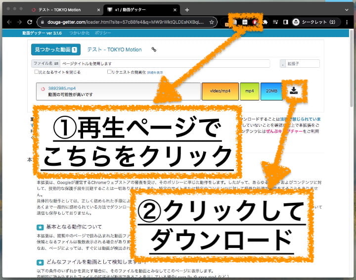 専門性と利便性の折衷としてのブラウザの拡張機能を使いましょう。拡張機能を使えば、ソフトのインストールも、広告の打開もしなくてTokyomotionをダウンロードできます。今回紹介するのはDouga Getterという専門的で高度なテクを用いている拡張機能です。