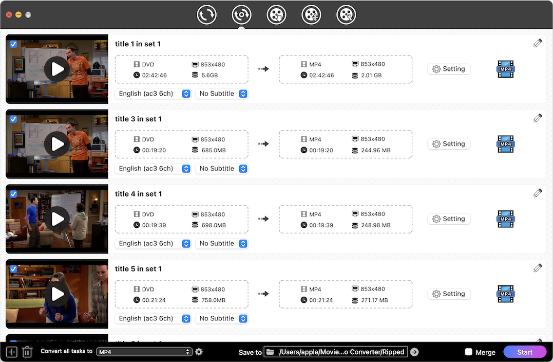 DVD/Blu-rayディスクのすべてのタイトルが表示され、ユーザーは必要なコンテンツを選択して変換できます。