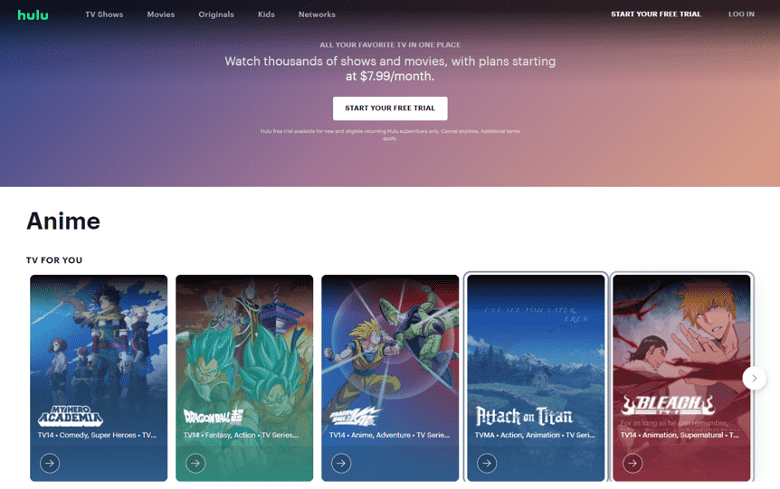Hulu, an on-demand streaming service owned by Disney, offers TV series, movies, live channels and anime. Besides, Hulu is good at captioning dubbed and subbed series with the most popular anime and simulcasts, it is a great platform for casuals to get into the anime world.