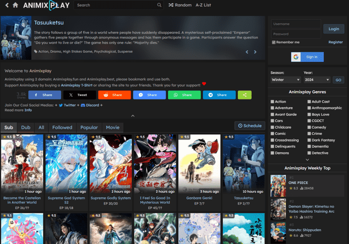 Animixplay is a very appreciated anime watch and download website with a great library for all types of anime needs. It is fast with all the episodes listed and it is completely ad-free, which brings us a wonderful viewing experience.