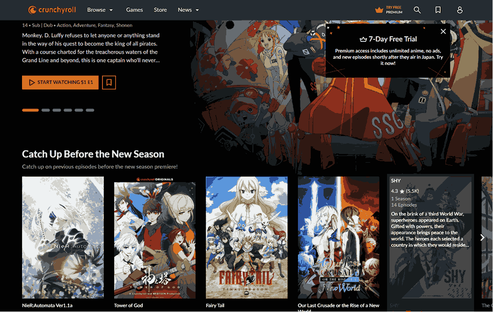 Crunchyroll is an American streaming platform with a massive library of anime episodes, series, and movies subbed and dubbed. Besides, its strong simulcast support is amazing for shows streamed online of the original Japanese broadcast.