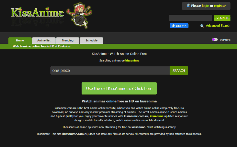 Kissanime is an old and popular video streaming site and is one of the world’s biggest streaming anime websites. You can stream or download all kinds of anime for free. You don’t need an account to watch the subbed episode with high quality.