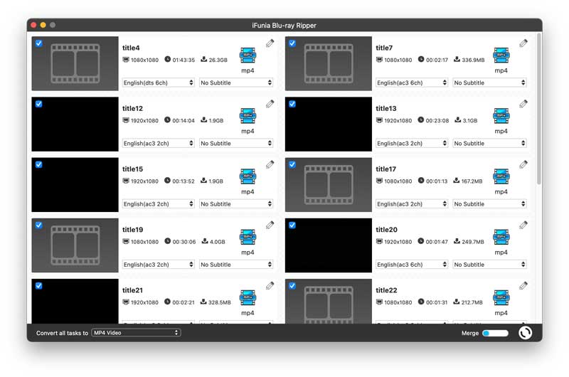 After loading the Blu-ray movies, all titles will be presented and selected by default. If you don’t want, just uncheck the according box in the top left corner of each video thumbnail.