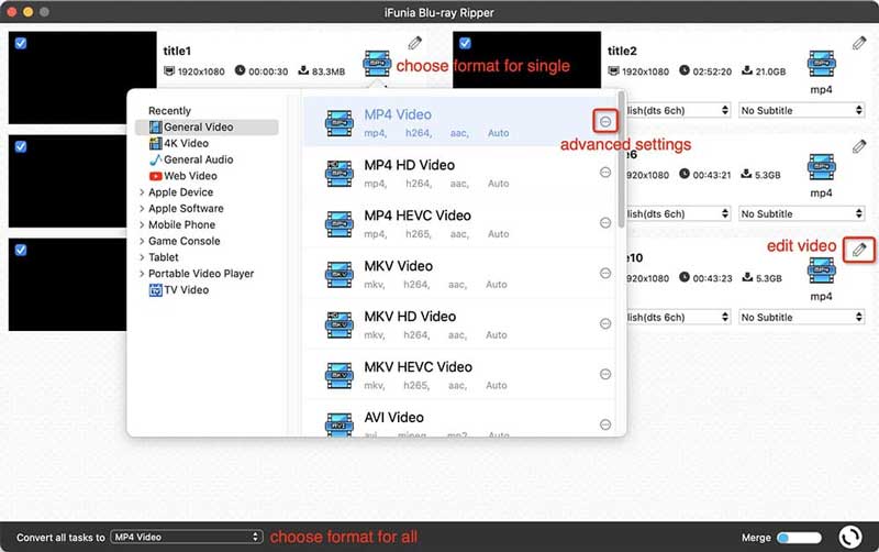 Many Blu-ray to digital converters such as iFunia Blu-ray Ripper offer presets optimized for devices. If you're unsure about which format to choose for a special device, these presets are a good starting point.