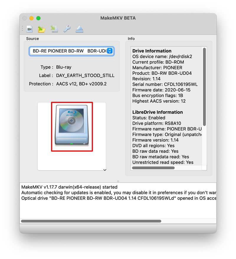 Download the latest version of MakeMKV from the official website, install and run it.