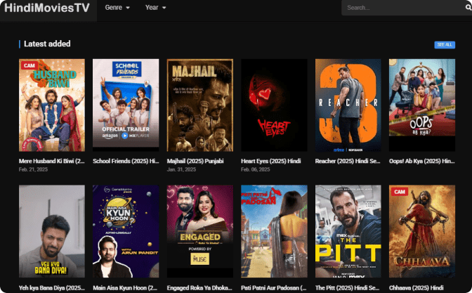 HindiMoviesTV, as its name suggests, is a website focus on Hindi movies only. You can watch latest Bollywood movies in HD for free and explore the best Hindi movies by genre and year. Its library mostly includes movies in the last three years.