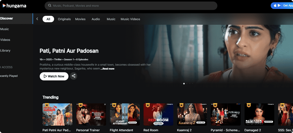 Hungama is a popular Indian entertainment platform where you can stream Bollywood movies, short films, music and even podcasts. It allows you to watch and download Bollywood and Hollywood movies after you registered and selected a price plan.