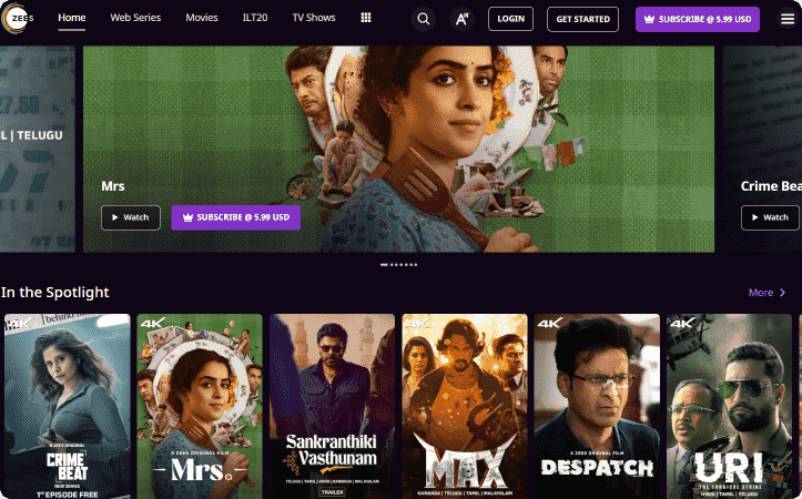 Zee5 is one of the most popular video on demand streaming platform in India. In addition to subscription content, here you can explore a huge list of 2000+ Bollywood movies online in full HD or 4K plus other regional movies. Login is not required for free content. You can also download your favorite Hindi movies on Zee5 using a downloader app like iFunia.