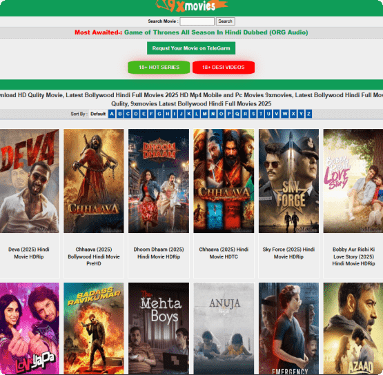 9xmovies is also a great site for watching and downloading HD Bollywood movies as well as Hindi TV shows for free. It’s a resourceful site with movies in other countries dubbed in Hindi. This A to Z Bollywood movie free download website allows you to browse movies by alphabet or by year. You can download full movies and TV series in MP4 format 480p 720P quality.
