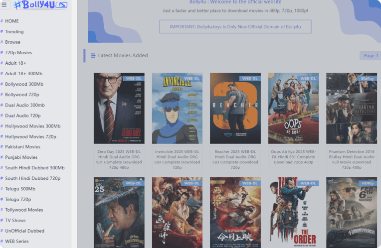 Bolly4U provides all the new Indian movies information and allows you to download Bollywood movies with ease. Similar to Filmyzilla, it also covers Hollywood, Southern Indian movies and Hindi-dubbed anime series. You can browse all the Bollywood movies by letter and open any title to download. Bolly4U also highlights trending movies for you if you don’t know which one to watch.