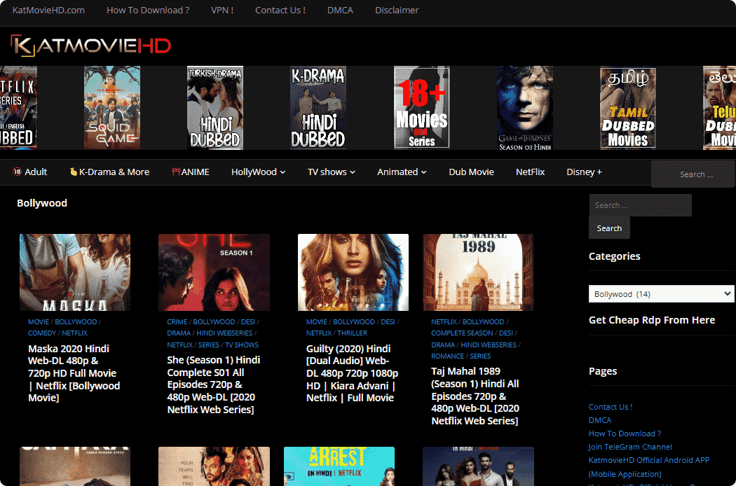 KatMovieHD is a popular platform to watch and download Bollywood movies plus various Hindi-dubbed movies and TV series. This site offers up to 1080p HD quality and has less ads than other free sites. You need to follow its guide to generate a download link if you want to download a movie. In addition, KatmovieHD also has an official Android app for mobile downloading and viewing.