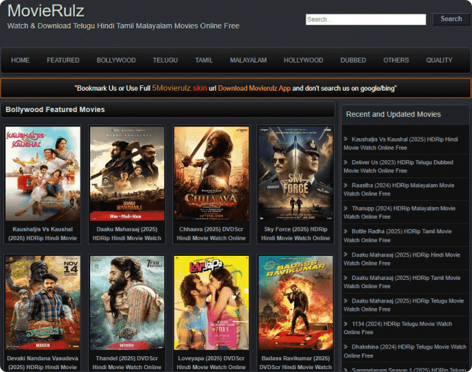 MovieRulz is a popular torrent site for new Hindi movie download and other Indian films in languages like Tamil, Telugu and Malayalam. You can also watch directly online. Plus, it offers primarily MKV movies in 480p, 720p and 1080p resolution.