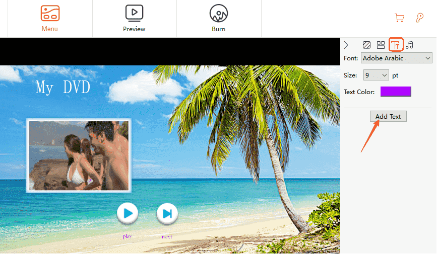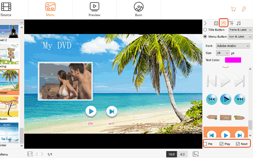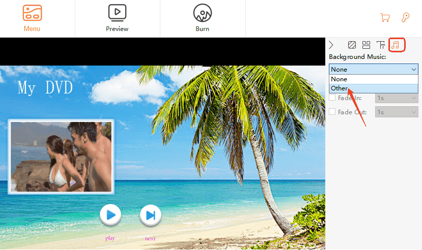 Move to the "Menu" tab on the top to switch to another interface for creating DVD menus. Choose a menu template that is suitable for your DVD subject, and you can also create a special DVD menu as you need. For sure, you can click "No Menu" as well.