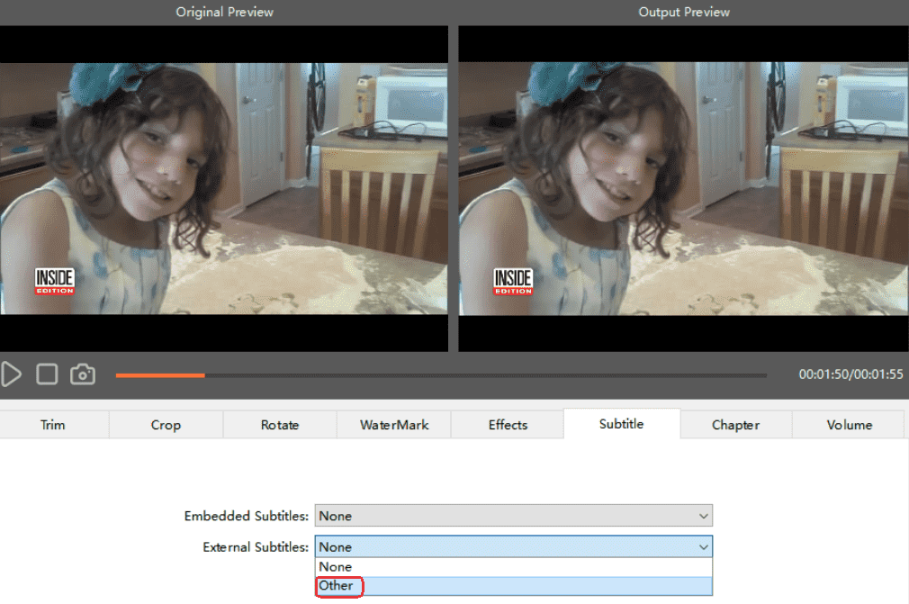 Subtitle: you can add the subtitle under this tab, if there are no captions embedded in the video, you can also add external subtitles.