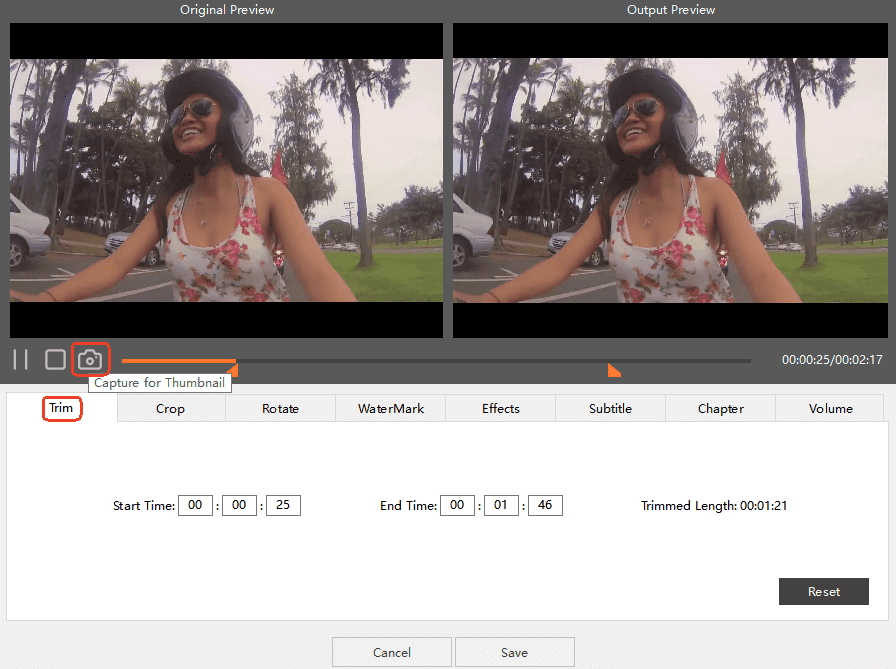 Trim: cut the video length according to your needs.