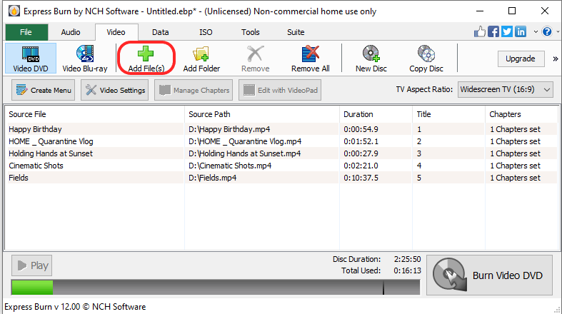 Express Burn is a dedicated disc burning suit developed by NCH Software. It offers a free version that can burn CDs permanently for free, and a time-limited free trial of all features, including burning video DVD, data DVD and video Blu-ray(BD) disc.