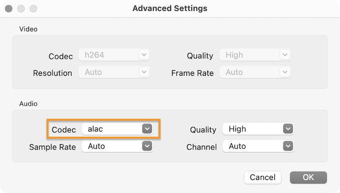 icon after the M4A Audio to adjust the audio codec, change Codec from AAC to ALAC, and click OK.