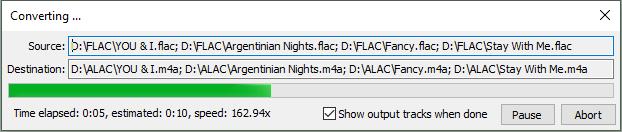 FFmpeg is a cross-platform command-line tool designed for converting video and audio files. It’s not included above because it’s too complex for this task and require a steep learning curve. Although I managed to convert some FLAC files to ALAC using FFmpeg, some files with tag information failed.