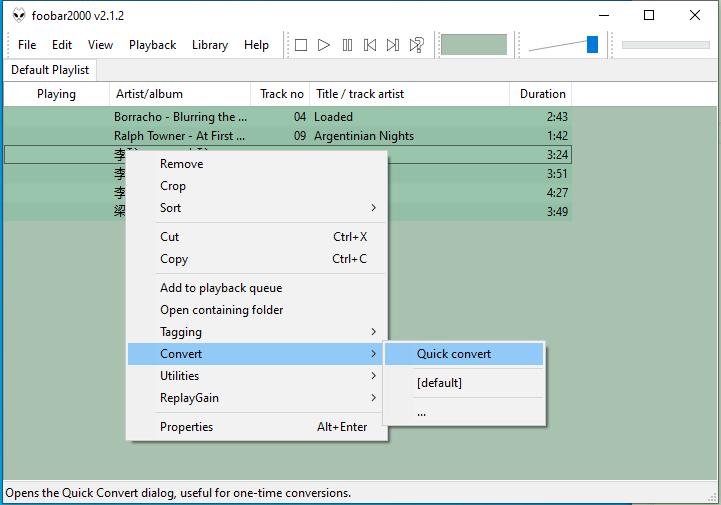 Step3. Select the added audio file(s), right-click on it and choose Convert > Quick convert.