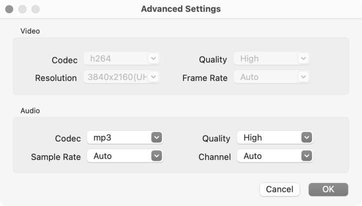 to access the Advanced Settings window, where you can change the audio quality and sample rate.