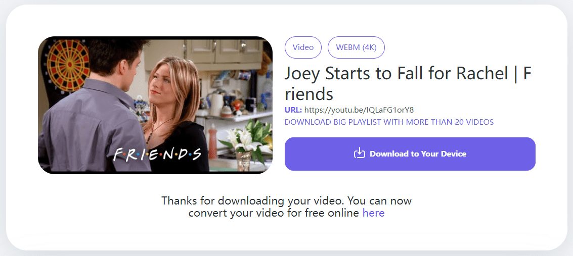 YTConverter is a great online YouTube to WebM converter. The interface is clean and user-friendly. What I like the most about this tool is that it’s totally free without ads on it and without downloading software or installing plugins. Users are allowed to download and convert YouTube videos online with easy clicks.