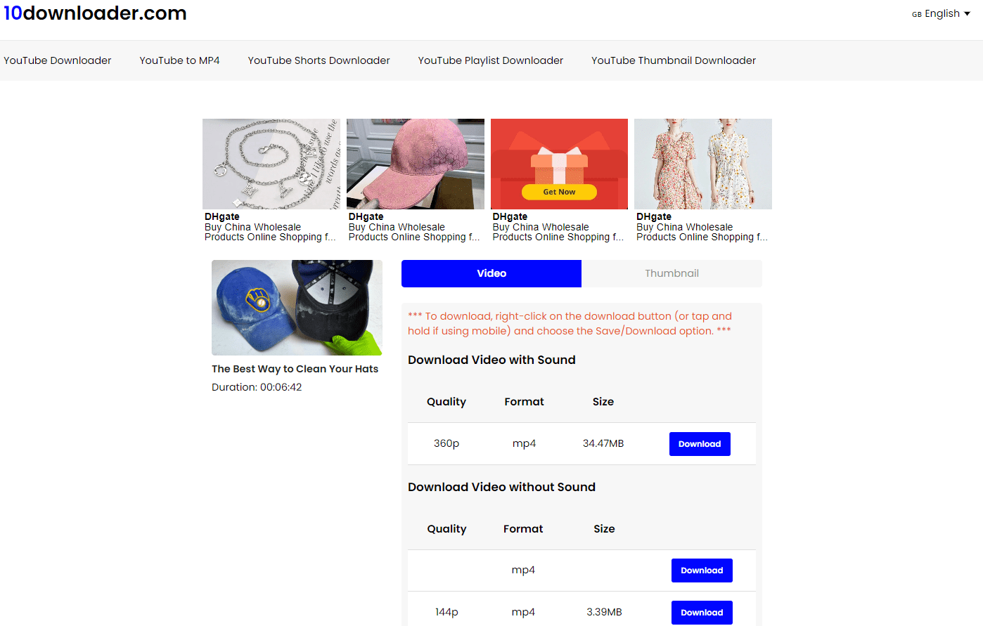 10downloader is a free online tool for directly downloading YouTube videos in MP4 and WebM formats. You can save and convert YouTube videos in HD quality without installation on your computer or mobile browsers.