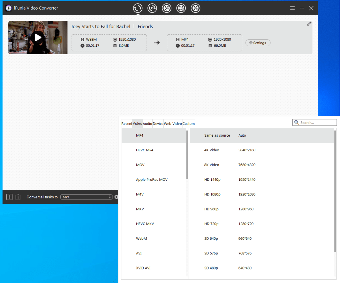 Yes, this is quite easy, here I recommend iFunia’s other software, iFunia Video Converter, which can convert videos and audio from almost any format to any format with a long list of resolution options.