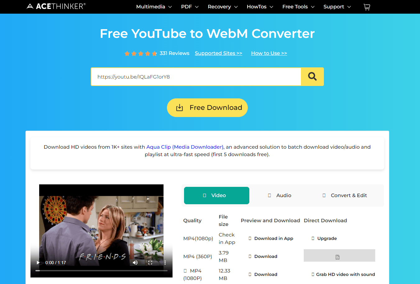 Acethinker is a free and easy way to convert YouTube videos to WebM format. This converter comes with multiple video and audio quality and resolution. It is fast, simple, and ad-free.