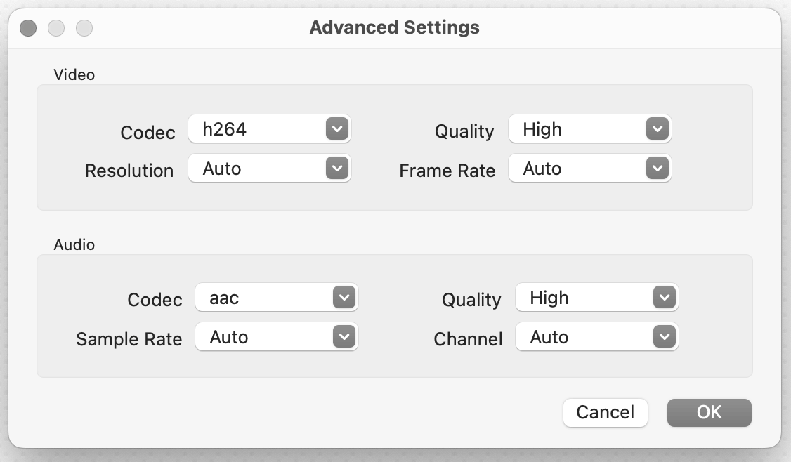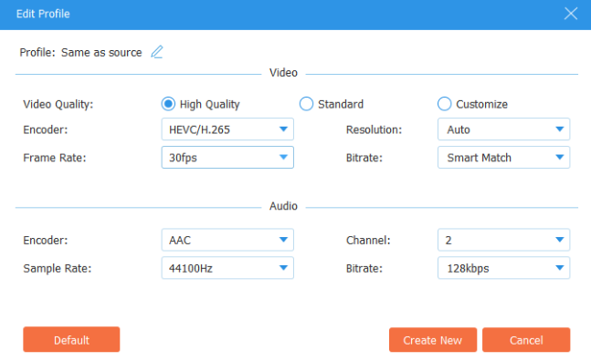 Like iFunia, you can choose the video and audio codecs by clicking the gear icon. If you don’t know which one to select, go back to the iFunia part for more details.