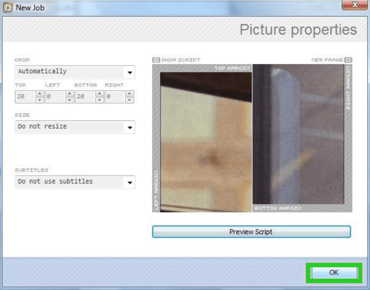 By clicking Properties, you can crop and resize the movie. Normally I don’t use these functions as they are not that satisfactory, but do have a try if you want to upscale or downscale the pixels.