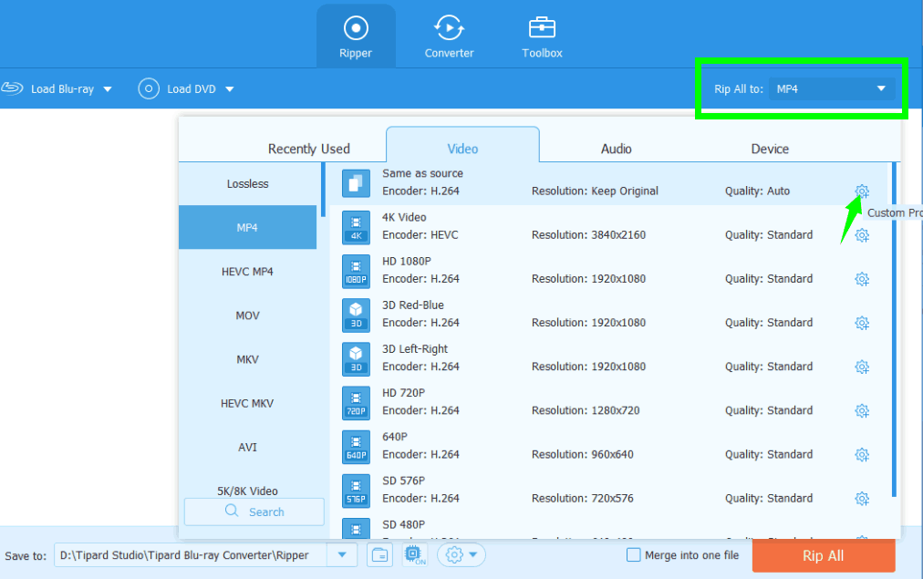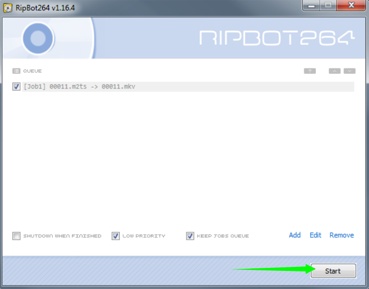 RipBot264 is a free converter that can handle DVD, Blu-ray, or any video, and rip them to MP4, MKV, or other devices. This solution will let you have control over every process.