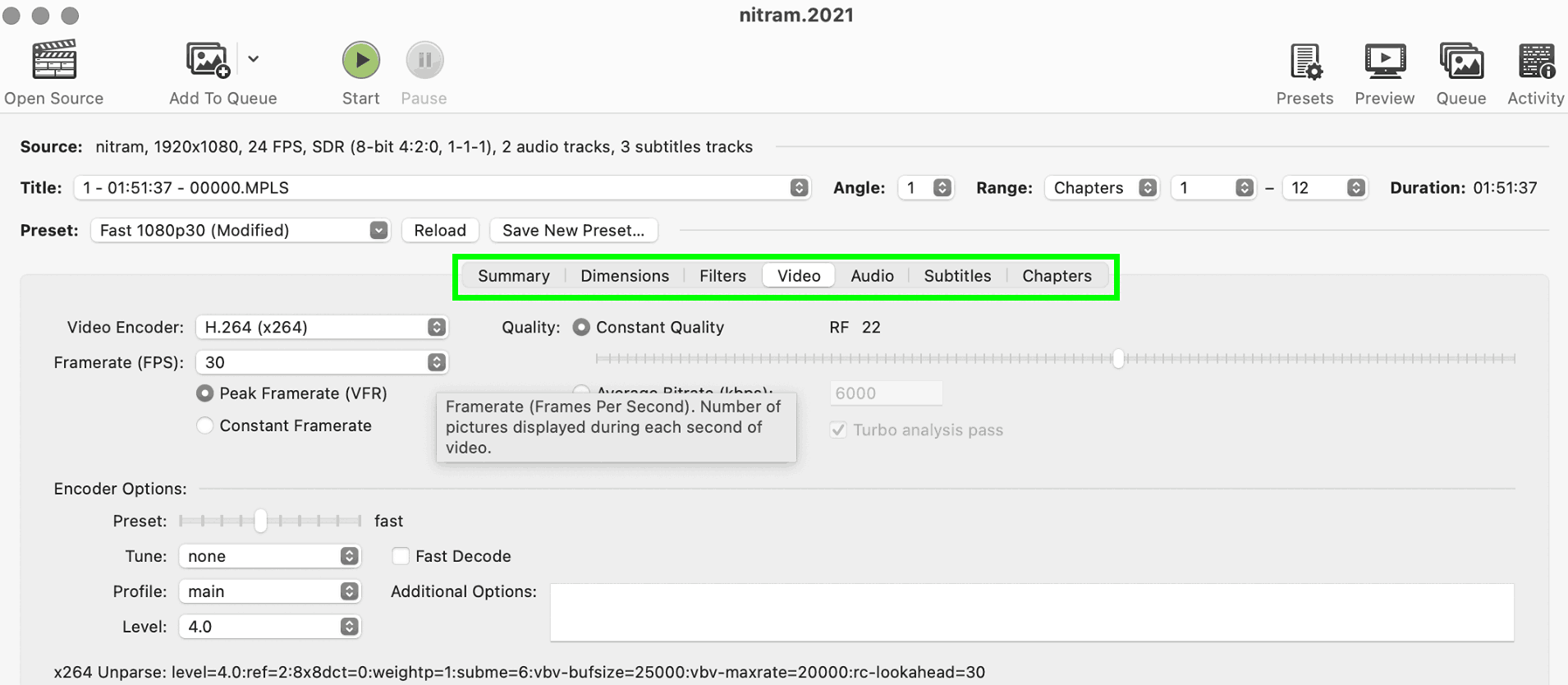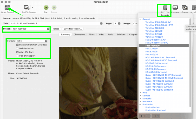 Handbrake is well-known as a free and open-source program to transcode videos. It converts videos from almost any format and allows to preset various resolutions and codecs.