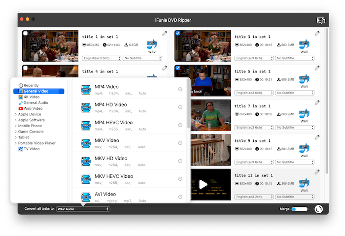 With this DVD ripper, you can compress the DVD video file size by adjusting video parameters, choose preferred audio track and subtitles, and edit or merge DVD titles if necessary.