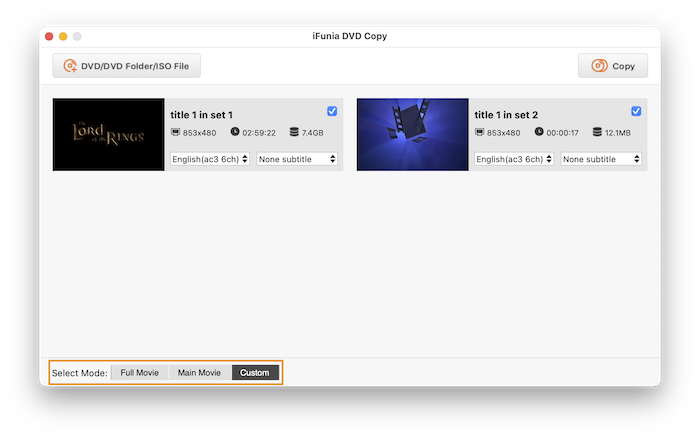 iFunia DVD Copy for Mac is a dedicated DVD copy software designed to copy any DVD to DVD or hard drive on Mac. It can bypass various copy protections such as CSS, region codes, Sony ARccOS, UOPs, etc. and perfectly clone commercial DVD movies and TV shows, be it old or new. With this DVD copy software, you can copy all DVD content or save certain part of the DVD under a custom mode. Whether you want to copy a self created DVD or a purchased one, iFunia DVD Copy can be an optimal choice.