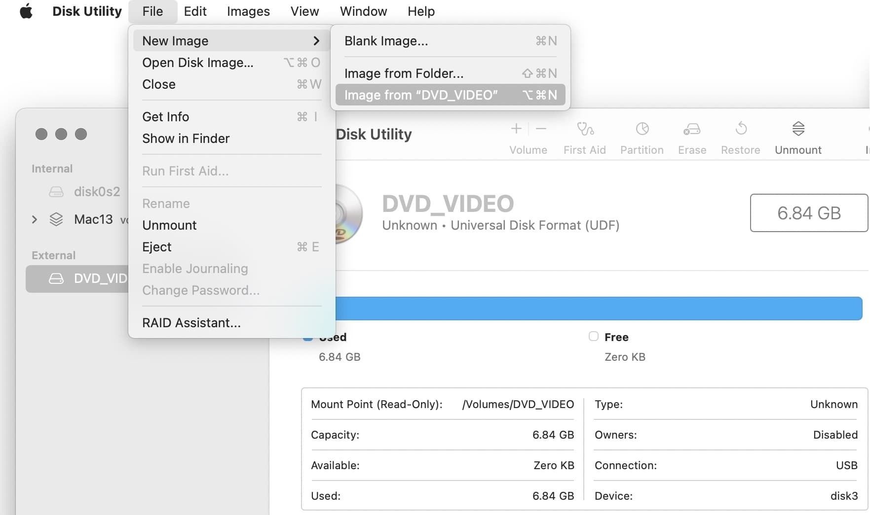 Disk Utility is a system app that comes with all Macs and is designed to better manage your hard drive and resolve disk issues. Although Apple removed its disc burning feature since macOS 10.11, Disk Utility can create a disc image copy from unencrypted DVDs. Then you can use Finder to burn the image file to another DVD. This way, you can copy the entire DVD contents and structure without a third-party software.