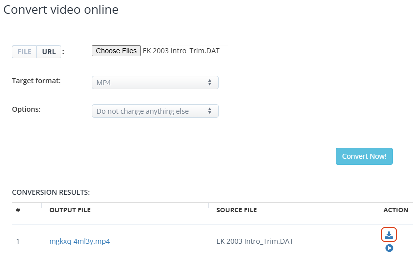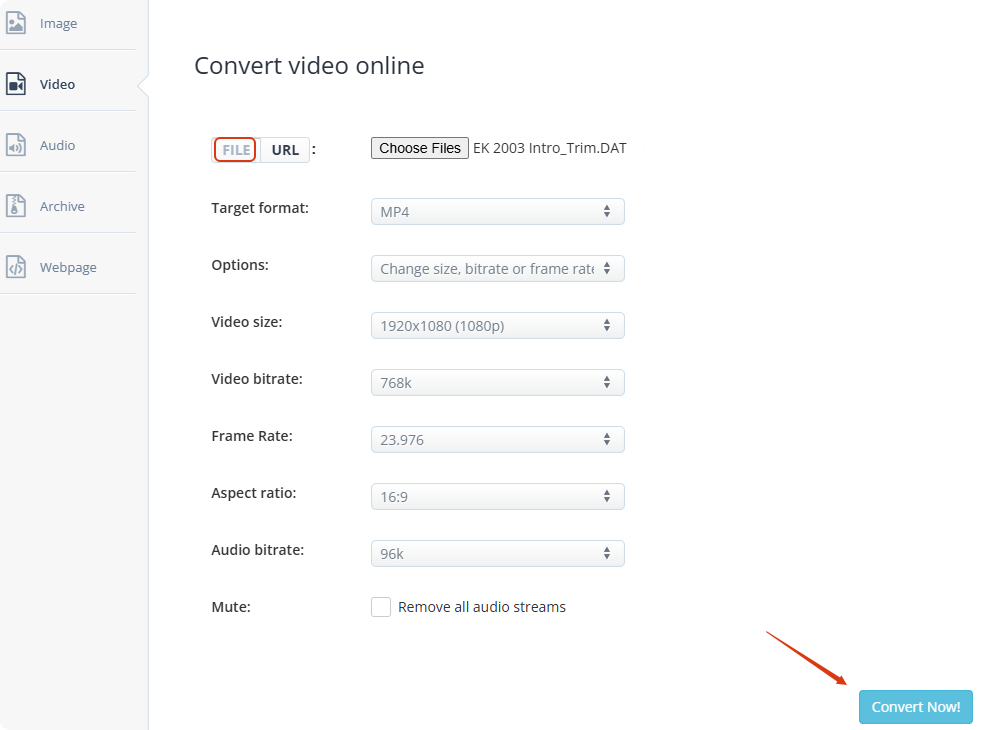 - Head to a good online DAT to MP4 converter such as Aconvert, which works better than a dozen of other online converters during my test.