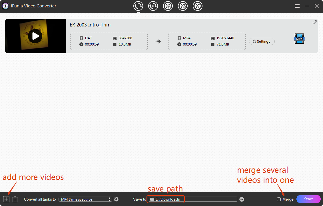 #1 Convert Large DAT File to MP4 with iFunia Video Converter [Best]
