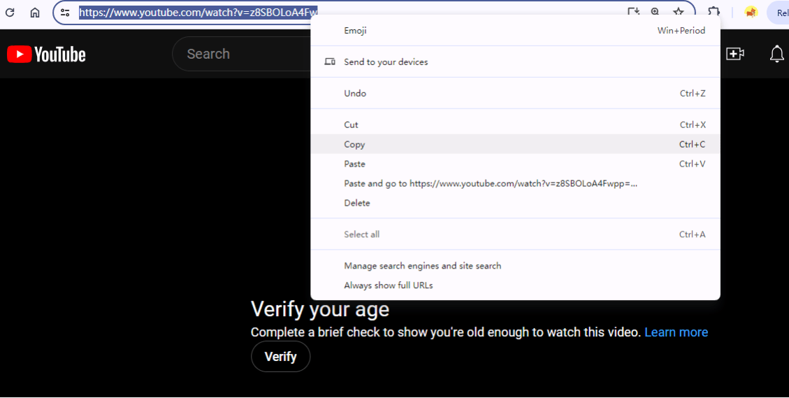 - Copy the age-restricted YouTube video link address. The software will automatically analyze the URL.