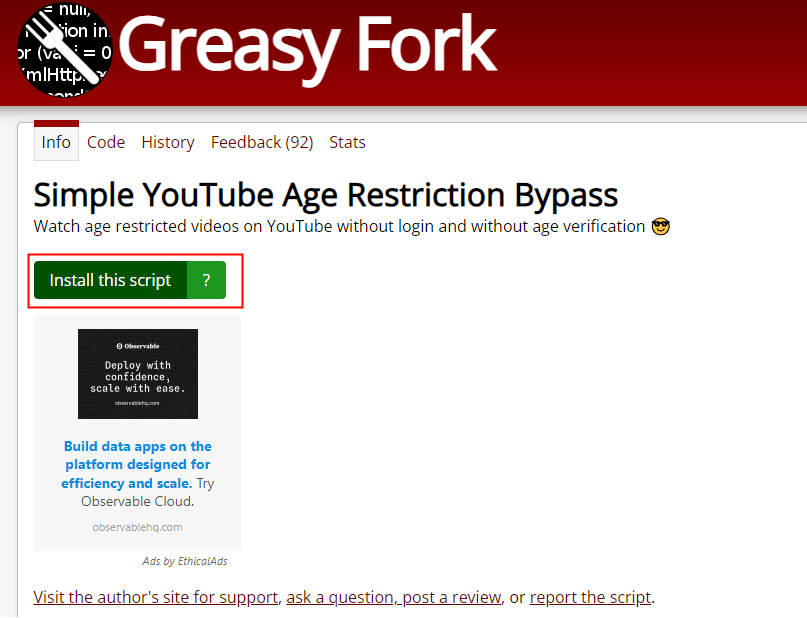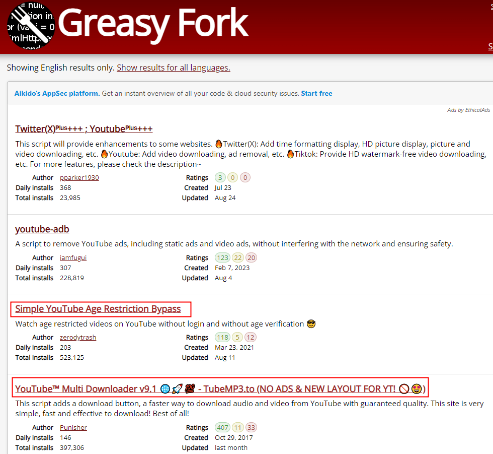 - It notices you to find the scripts, click it and it will direct you to website Greasy Fork.