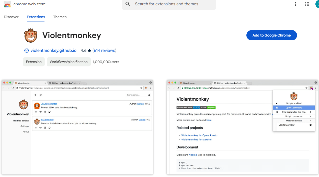 - Add the browser extension into your browser. For Google Chrome, install Violentmonkey or Tampermonkey, and for Firefox, Violentmonkey or Greasemonkey.