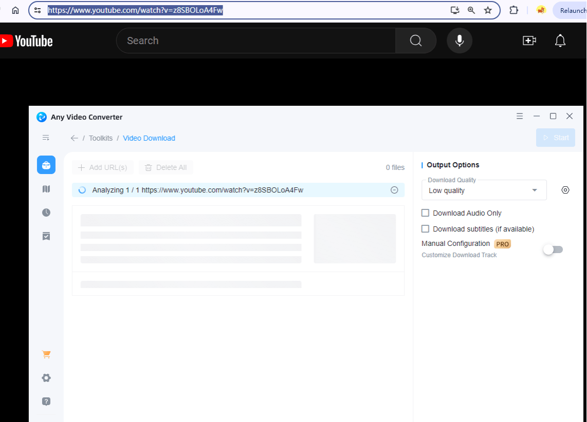 The freeware Any Video Converter is also a good option for YouTube download age restricted videos without account. It helps you download, convert, and edit videos seamlessly. What makes it special is that once you opened it, it will pop up and analyze automatically a video URL copied.