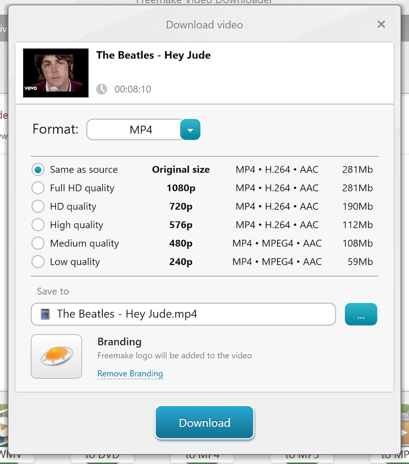 | Freemake YouTube Downloader | 360P - 1080P | MP4/MP3/AVI/WMV/MPEG/3GP/MKV/FLV, etc. | No | Medium |