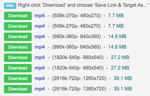 Step 4. Once it finishes analyzing the URL, you can choose the video quality you need, say, MP4 – (1280×720). Right-click or control-click the Download button and choose Save Link As, or Save Link & Target As, or a similar option.