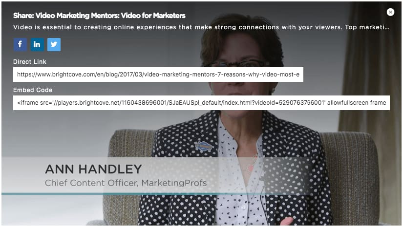 However, some Brightcove videos don’t show the share icon. Fortunately, there is a workaround.