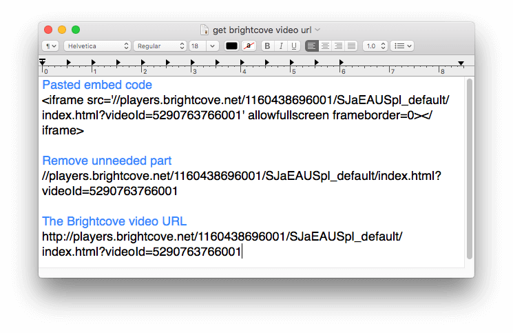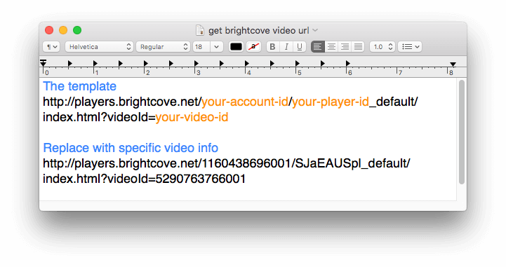 Step 2. Copy the Account ID, Player ID and Video ID and paste them in your text editor.