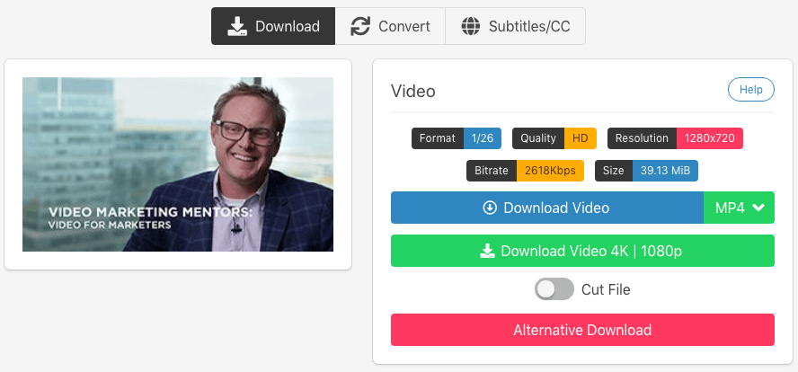 Step 5. Now you are presented with three tabs: Download, Convert and Subtitles/CC. Under the Download tab, click the Download video button to save the Brightcove video.