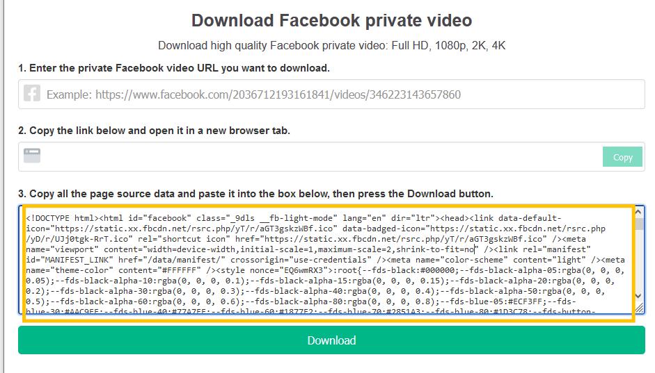 Step 4: Go to fdownloader.net/en/download-private-video. Paste the copied data into the provided box and click the Download button.
