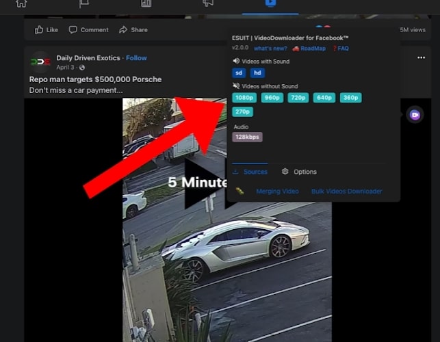 Another easy way to download Facebook videos to your computer is to utilize browser extensions. Among several workable options, I recommend Video Downloader for Facebook offered by ESUIT. It allows you to download videos without copying and pasting URLs by adding a download button to the Facebook website. But as mentioned above, browser extensions can’t handle complex video remuxing, so it can only download Facebook videos in SD or HD quality.
